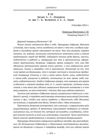 Письмо В. С. Абакумова на имя Г. М. Маленкова и Л. П. Берии. 4 декабря 1951 г. // АП РФ. Ф. 3. Оп. 58. Д. 542. Л. 136–137 (об). Подлинник. Рукопись.