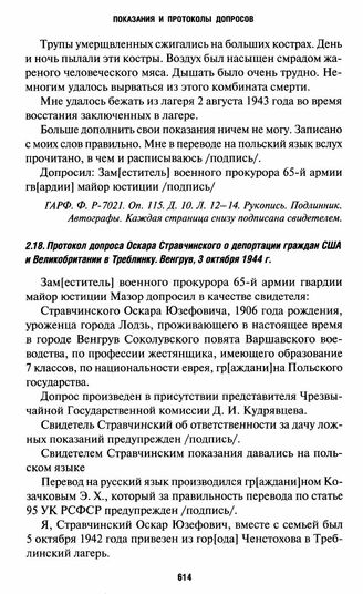 Главная Треблинка. Исследования. Воспоминания. Документы Протокол допроса Оскара Стравчинского о депортации граждан США и Ве...