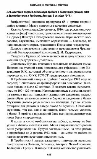 Протокол допроса Александра Кудлика о депортации граждан США и Великобритании в Треблинку. Венгрув, 3 октября 1944 г.