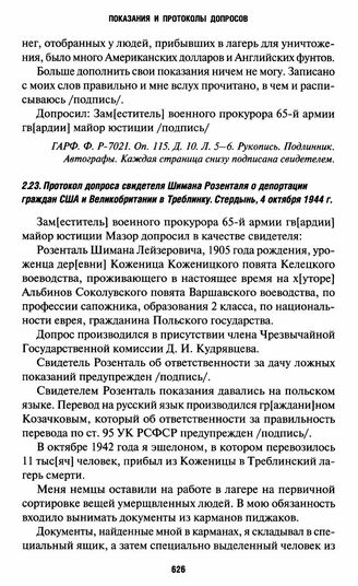 Главная Треблинка. Исследования. Воспоминания. Документы Протокол допроса свидетеля Шимана Розенталя о депортации граждан СШ...