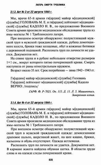 Акты вскрытия могил на территории Треблинки I. Акт № 4 от 22 августа 1944 г. // ГАРФ. Ф. Р-7021. Оп. 115. Д. 11. Л. 6. Машинопись. Заверенная копия.