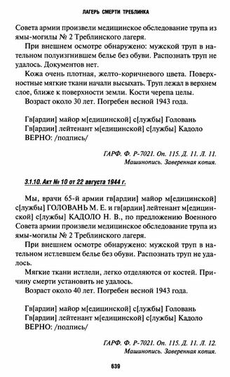Акты вскрытия могил на территории Треблинки I. Акт № 10 от 22 августа 1944 г. // ГАРФ. Ф. Р-7021. Оп. 115. Д. 11. Л. 12. Машинопись. Заверенная копия
