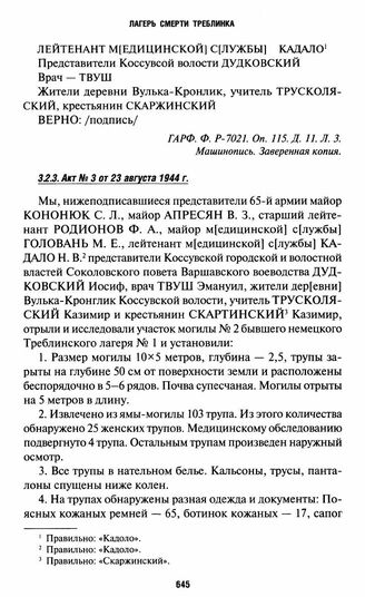 Акты по изучению массовых захоронений от 23 августа 1944 г. Акт № 3 от 23 августа 1944 г. // ГАРФ. Ф. Р-7021. Оп. 115. Д. 11. Л. 4. Машинопись. Заверенная копия.