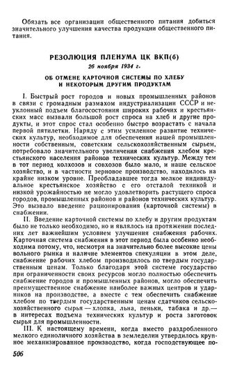 Резолюция пленума ЦК ВКП(б), 26 ноября 1934 г. Об отмене карточной ...