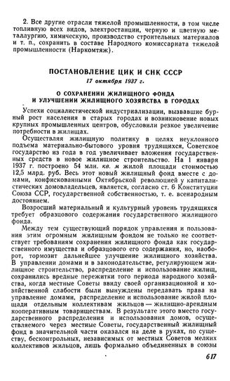Постановление ЦИК и СНК СССР, 17 октября 1937 г. О сохранении жилищ...