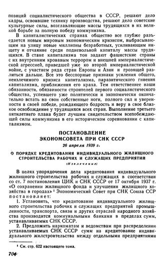 Постановление Экономсовета при СНК СССР, 26 апреля 1939 г. О порядке кредитования индивидуального жилищного строительства рабочих и служащих предприятий (Извлечение)