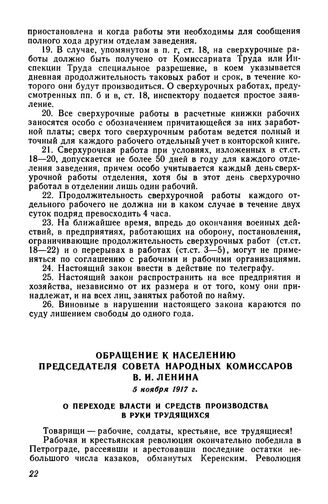Обращение к населению Председателя Совета Народных Комиссаров В.И. Ленина, 5 ноября 1917 г. О переходе власти и средств производства в руки трудящихся