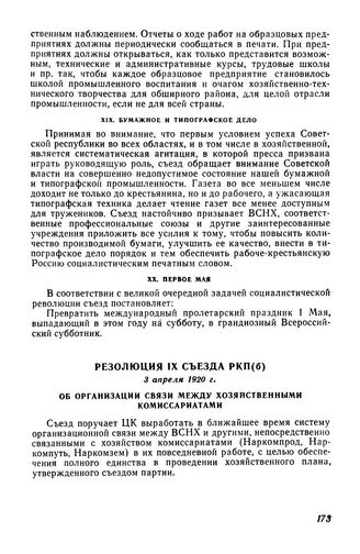 Резолюция IX съезда РКП(б), 3 апреля 1920 г. Об организации связи между хозяйственными комиссариатами