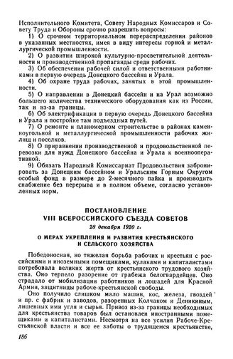 Постановление VIII Всероссийского съезда Советов, 28 декабря 1920 г. О мерах укрепления и развития крестьянского и сельского хозяйства