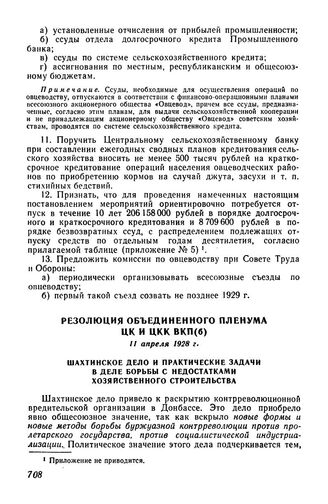 Резолюция объединенного Пленума ЦК и ЦКК ВКП(б), 11 апреля 1928 г. Шахтинское дело и практические задачи в деле борьбы с недостатками хозяйственного строительства