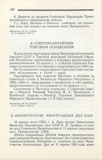К советско-китайским торговым отношениям // «Известия» № 95 (10244) от 21 апреля 1950 г.