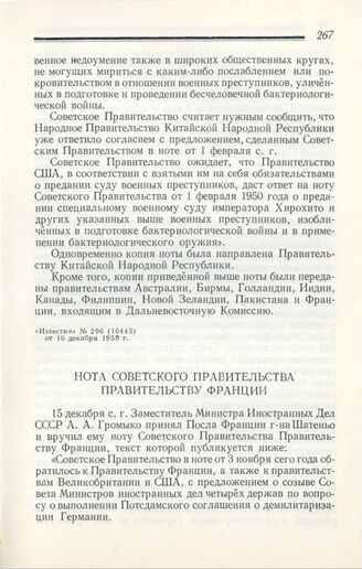 Нота Советского Правительства Правительству Франции // «Известия» № 297 (10446) от 17 декабря 1950 г.