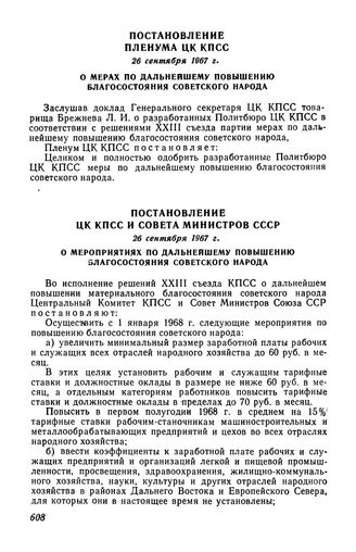Постановление ЦК КПСС и Совета Министров СССР 26 сентября 1967 г. О мероприятиях по дальнейшему повышению благосостояния советского народа