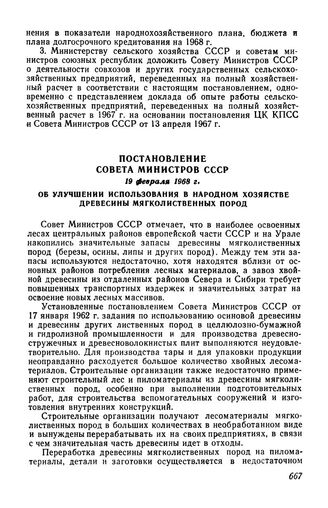 Постановление Совета Министров СССР 19 февраля 1968 г. Об улучшении использования в народном хозяйстве древесины мягколиственных пород