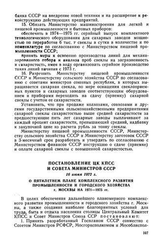 Постановление ЦК КПСС и Совета Министров СССР, 16 июня 1972 г. О пятилетием плане комплексного развития промышленности и городского хозяйства г. Москвы на 1971-1975 гг.