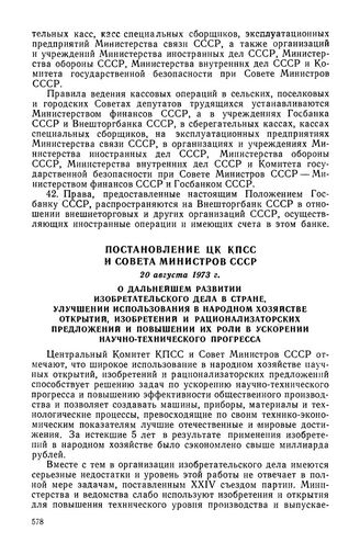 Постановление ЦК КПСС и Совета Министров СССР, 20 августа 1973 г. О дальнейшем развитии изобретательского дела в стране, улучшении использования в народном хозяйстве открытий, изобретений и рационализаторских предложений и повышении их роли в ускорении научно-технического прогресса