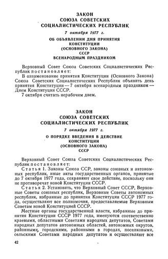 Закон Союза Советских Социалистических Республик, 7 октября 1977 г. Об объявлении дня принятия Конституции (Основного Закона) СССР всенародным праздником