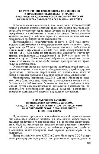 В Центральном Комитете КПСС и Совете Министров СССР. О дальнейшем развитии производства кормовых добавок, средств защиты растений и другой продукции микробиологической промышленности в 1978-1985 годах