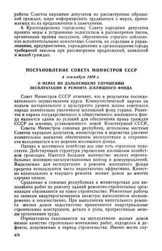 Постановление Совета Министров СССР, 4 сентября 1978 г. О мерах по дальнейшему улучшению эксплуатации и ремонта жилищного фонда