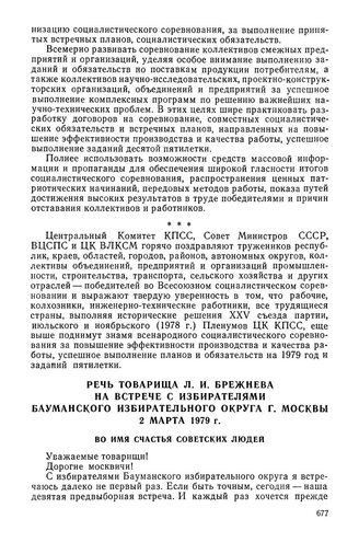 Речь товарища Л.И. Брежнева на встрече с избирателями Бауманского избирательного округа г. Москвы 2 марта 1979 г. Во имя счастья советских людей