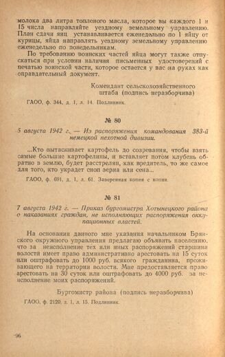 Приказ бургомистра Хотынецкого района о наказаниях граждан, не исполняющих распоряжения оккупационных властей. 7 августа 1942 г.