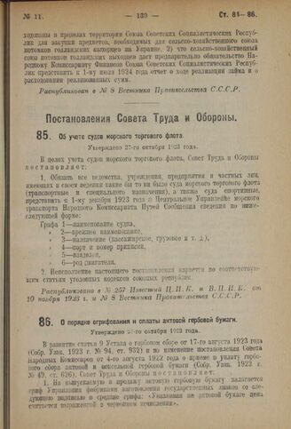Постановление Совета Труда и Обороны. Об учете судов морского торгового флота. Утверждено 27-го октября 1923 года