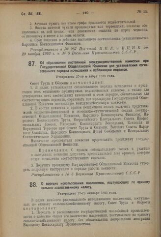 Постановление Совета Труда и Обороны. О порядке использования маслосемян, поступающих по единому сельско-хозяйственному налогу. Утверждено 27-го октября 1923 года