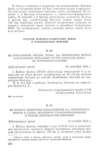 Из оперативной сводки штаба 2-го Украинского фронта о вступлении передовых частей советских войск на территорию Венгрии. 24 сентября 1944 г. // Печ. по архиву.