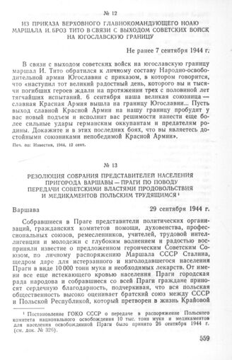 Из приказа Верховного Главнокомандующего НОАЮ маршала И. Броз Тито в связи с выходом советских войск на югославскую границу. Не ранее 7 сентября 1944 г. // Печ. по: Известия, 1944, 12 сент.