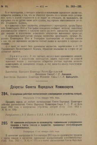 Декрет Совета Народных Комиссаров. О продлении действия постановления о воспрещении устройства лотерей. Утвержден 17-го января 1924 г.