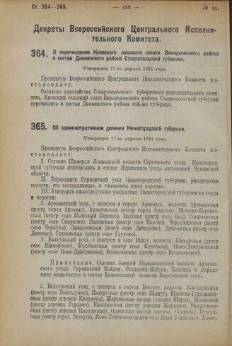 Декрет Всероссийского Центрального Исполнительного Комитета. Об административном делении Нижегородской губернии. Утвержден 17-го апреля 1924 г.