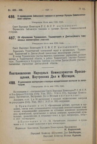 Декрет Совета Народных Комиссаров. О перемещении Зайсанской таможни в урочище Кузеунь Семипалатинской губернии. Утвержден 16-го мая 1924 г.