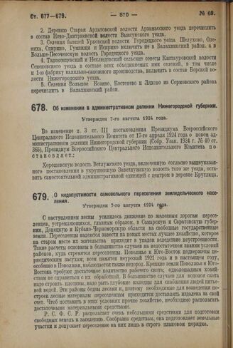 Декрет Всероссийского Центрального Исполнительного Комитета. О недопустимости самовольного переселения земледельческого населения. Утвержден 7-го августа 1924 г.