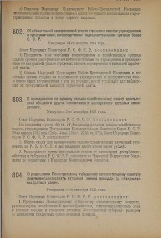 Декрет Совета Народных Комиссаров. О разрешении Ленинградскому губернскому исполнительному комитету демуниципализировать строения жилой площади до пятидесяти квадратных сажен. Утвержден 10-го сентября 1924 года