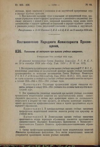 Постановление Народного Комиссариата Просвещения. Положение об экстернате при высших учебных заведениях. Утверждено 9-го октября 1924 года // Распубликовано в № 258 Известий Ц.И.К. и В.Ц.И.К. от 12 ноября 1924 года.