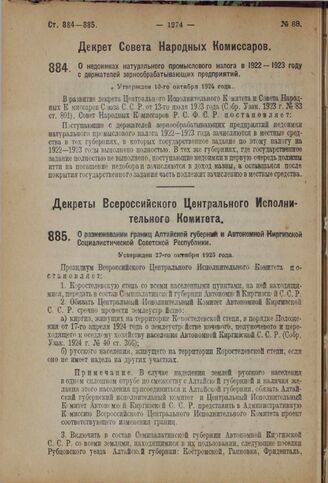 Декрет Всероссийского Центрального Исполнительного Комитета. О размежевании границ Алтайской губернии и Автономной Киргизской Социалистической Советской Республики. Утвержден 27-го октября 1923 года
