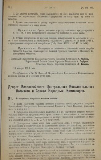 Декрет Всероссийского Центрального Исполнительного Комитета и Совета Народных Комиссаров. О кредитных операциях местных советов. 25 января 1923 г.