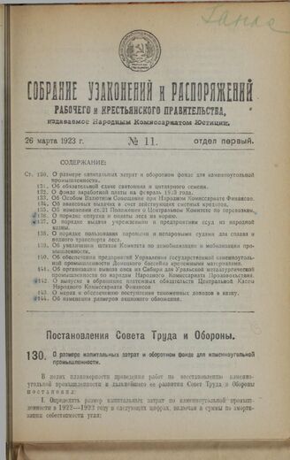 Главная Собрание законов и распоряжений правительства РСФСР и СССР Собрание законов и распоряжений Рабоче-Крестьянского Правительства ... Собрание узаконений и распоряжений Рабочего и Крестьянского правите... Собрание узаконений и распоряжений Рабочего и Крестьянского правите... Документы Постановление Совета Труда и Обороны. О размере капитальных затрат ...
