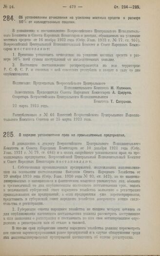 Декрет Всероссийского Центрального Исполнительного Комитета и Совета Народных Комиссаров. О порядке установления прав на промышленные предприятия. 22 марта 1923 года