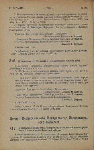 Известия Всероссийского Центрального Исполнительного Комитета Советов от 13 апреля 1923 года, № 80.