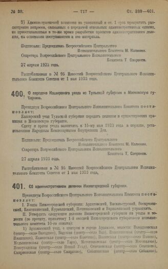 Известия Всероссийского Центрального Исполнительного Комитета Советов от 1 мая 1923 года, № 95.