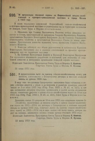 Постановление Совета Труда и Обороны. Об организации пожарной охраны на Всероссийской сельско-хозяйственной и кустарно-промышленной выставке в городе Москва в 1923 году. 22 июня 1923 года