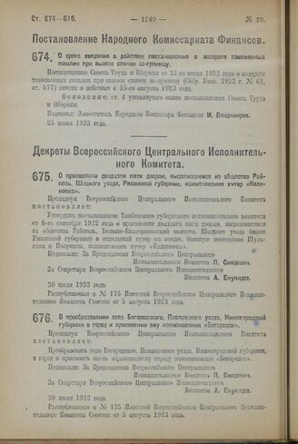 Декрет Всероссийского Центрального Исполнительного Комитета. О преобразовании села Богородского, Павловского уезда, Нижегородской губернии в город и присвоении ему наименования «Богородск». 30 июля 1923 года