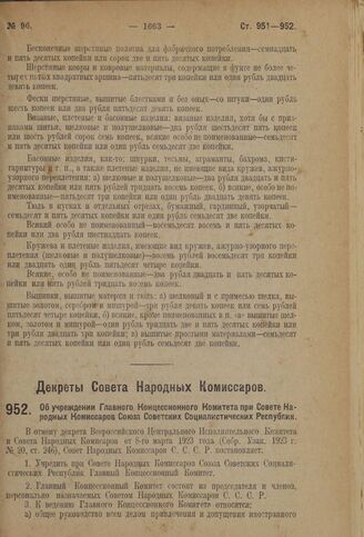Декрет Совета Народных Комиссаров. Об учреждении Главного Концессионного Комитета при Совете Народных Комиссаров Союза Советских Социалистических Республик. 21 августа 1923 г.