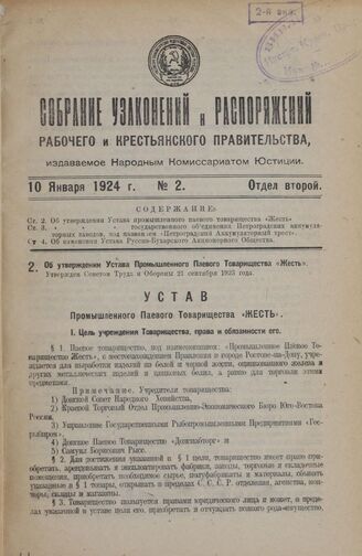 Собрание узаконений и распоряжений Рабочего и Крестьянского правительства за 1924 г. № 1-25. Отдел второй. — М., Б. г.