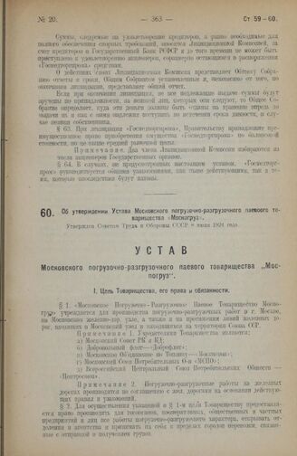 Об утверждении Устава Московского погрузочно-разгрузочного паевоого товарищества «Москогруз». Утвержден Советом Труда и Обороны СССР 8 июля 1924 года