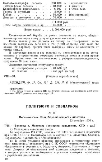 Постановление Политбюро по вопросам Молотова. 23 декабря 1930 г. Протокол № 21 // РЦХИДНИ. Ф. 17. Оп. 3. Д. 808. Л Л. 7—8.