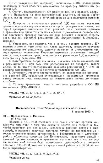 Постановление Политбюро по предложению Сталина. 8 апреля 1932 г. Протокол № 95