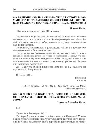 Радиограмма начальника УШПД Т. Строкача командиру партизанского соединения им. Боровика В. Ушакову о поставках в партизанские отряды. 21 июля 1943 г.