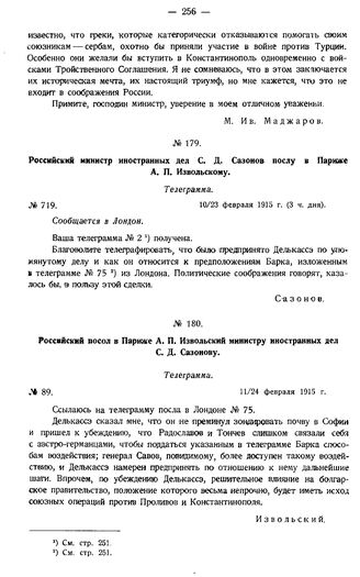 Российский посол в Париже А.П. Извольский министру иностранных дел С.Д. Сазонову. Телеграмма. № 89. 11/24 февраля 1915 г.